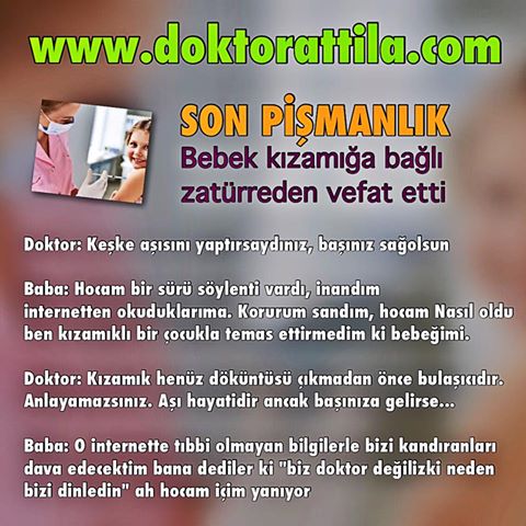 • İşte bu nedenle bilimsel bir kanıt olmaksızın “çocuğumu aşılatmam” diyen aile hem kendi çocuğunu hemde çevresindeki ailelerin çocuklarını riske atar.