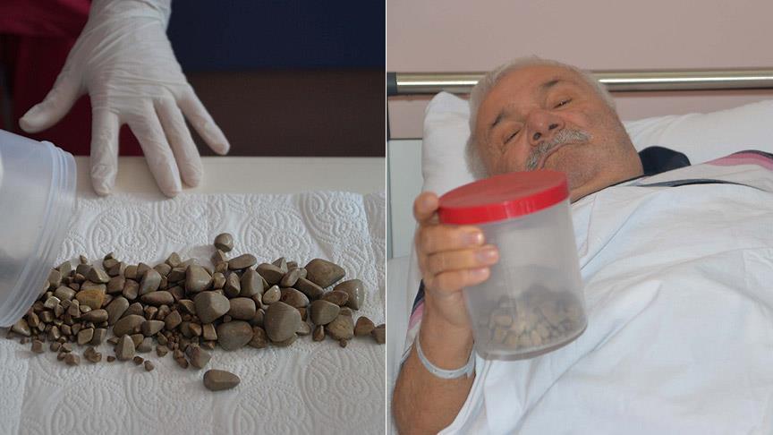 Taşların irili ufaklı olduğunu, adeta ırmak çakılını andırdığını aktaran Tercan, hastanın sağlığına kavuşmaya başladığını, taşlarından kurtulduğu için kendisini çok iyi hissettiğini anlattı.