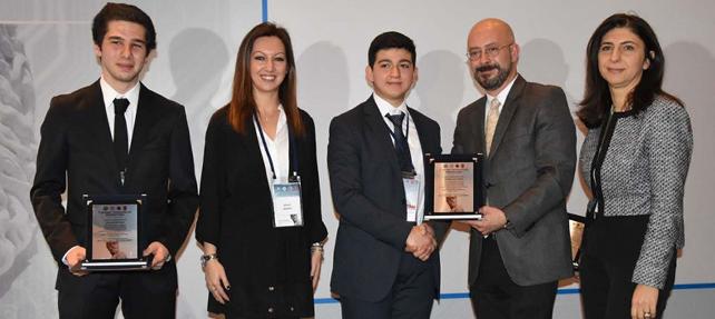 İzmir’de düzenlenen 1. Diyabet Teknolojileri Sempozyumu’nda sunum yapan iki öğrenciyle öğretmenlerine plaket verildi. İki öğrenci, yengeç ve karides kabuklarını kullanarak yaptığı nanolif, yaraları yüzde 30’a kadar daha hızlı tedavi edebiliyor.