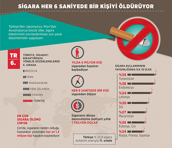 Türkiye’den Japonya’ya, Mısır’dan Avustralya’ya birçok ülke, 6 saniyede 1 kişinin, yılda 6 milyon kişinin hayatını kaybetmesine neden olan sigara tüketiminin sınırlandırılması için çeşitli yasal düzenlemeler uyguluyor.