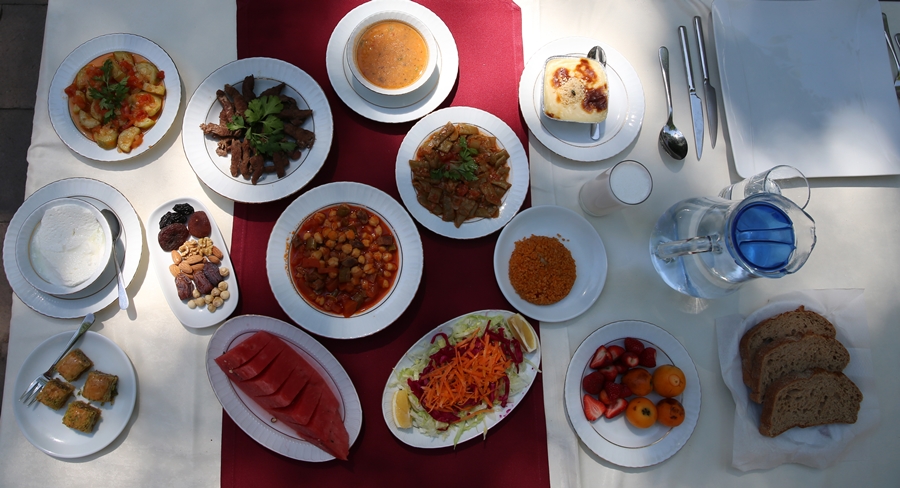 ANKARA (AA) – Sağlık Bakanlığınca ramazan ayının sağlıklı geçmesi için örnek iftar ve sahur sofrası hazırlandı. İftarda çorba, et, zeytinyağlı yemekler, sütlü tatlı ve meyve, sahurda ise süt, yumurta, kahvaltı tabağı yeşillik ve kuruyemiş tüketilmesi önerildi.