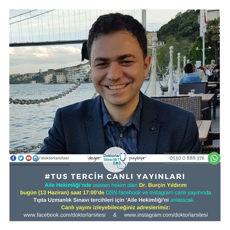 2017-TUS İlkbahar Dönemi tercih işlemleri, 12-16 Haziran 2017 tarihleri arasında yapılacak. Bu süreçte kendi uzmanlık dalını DoktorlarSitesi.NET (DSN) Facebook ve Instagram canlı yayınınında telefon bağlantısı ya da görüntülü bağlantı ile anlatacak asistan/uzman/hocalara çağrı yapıldı. Bu çağrıya yanıt verenlerle Tıpta Uzmanlık Sınavı (TUS) için tercih yapacak hekimler ve tıp öğrencileri canlı yayında buluşuyor.