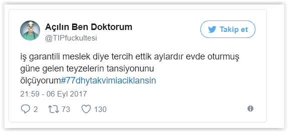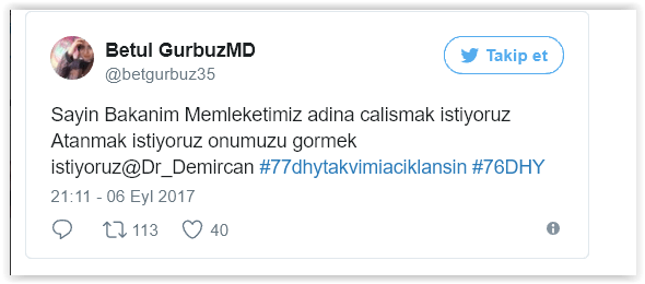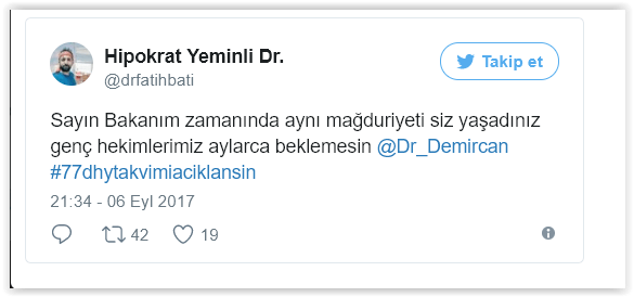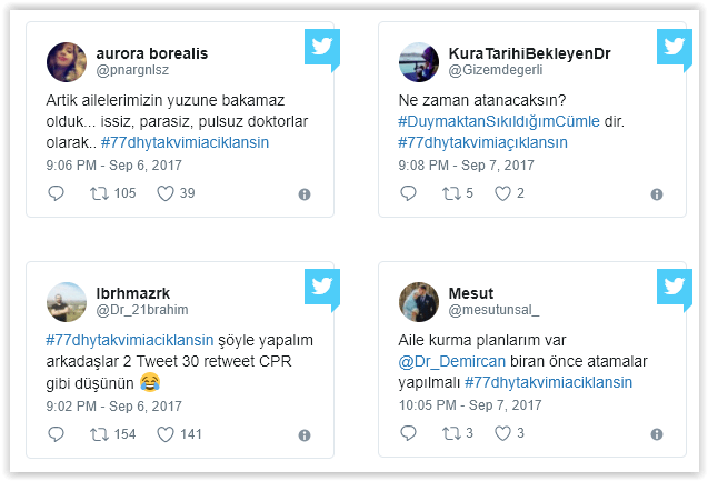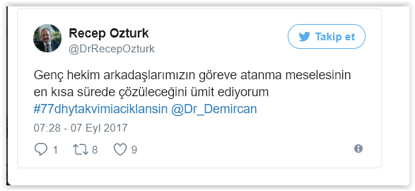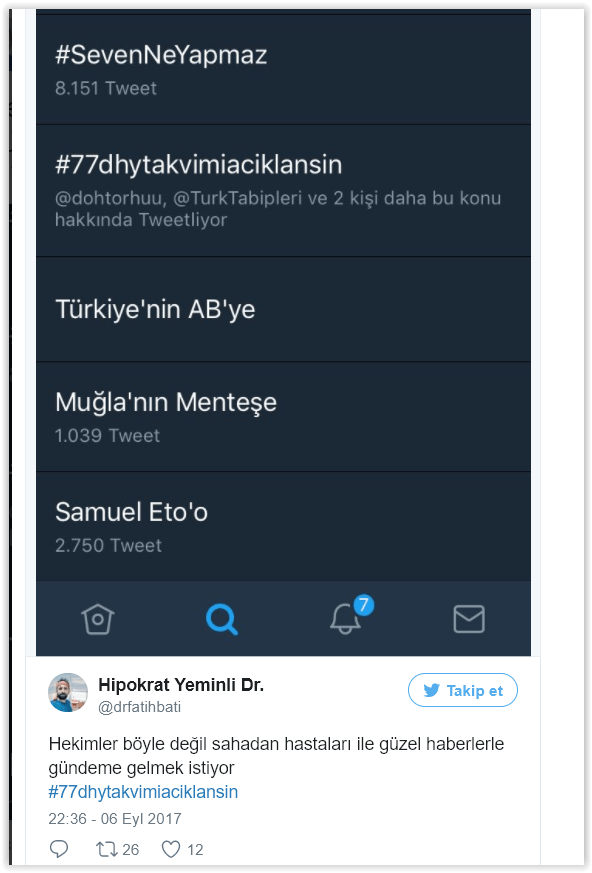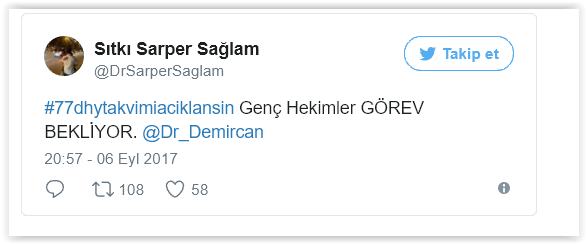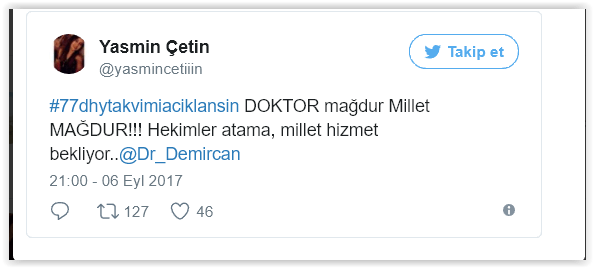 #77dhytakvimiaciklansin etiketiyle isteklerini dile getiren binlerce hekim Türkiye Gündemi’nde de yer buldu ve etiket ilk 20’ye girdi.