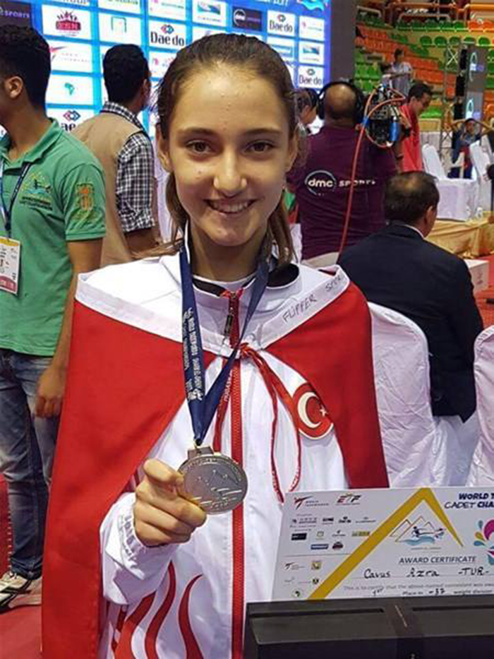 Mısır’da yapılan Yıldızlar Taekwondo Dünya Şampiyonası’nda 20 dakikada 4 maç kazanarak altın madalya kazanan Azra Çavuş, Türkiye’nin gururu oldu. 14 yaşındaki sporcuyu şampiyonaya, kentin hastanesinde görevli hekim Oğuzhan Tokgöz hazırladı.