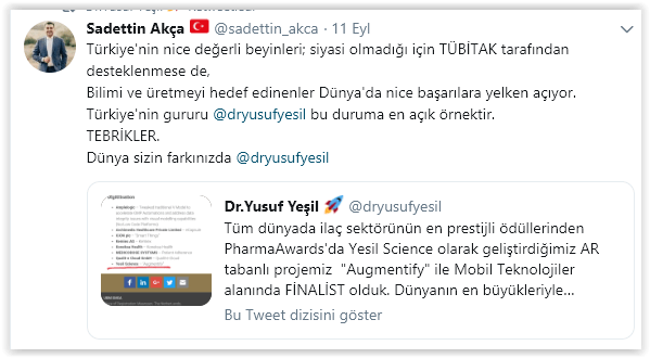 — Dr.Yusuf Yeşil 🚀 (@dryusufyesil) 11 Eylül 2018