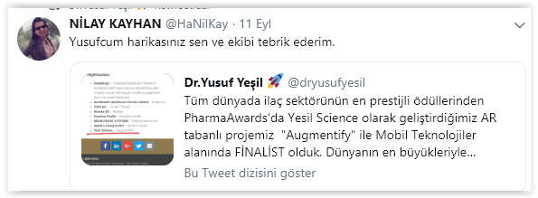 Tüm dünyada ilaç sektörünün en prestijli ödüllerinden PharmaAwards’da Yesil Science olarak geliştirdiğimiz AR tabanlı projemiz “Augmentify” ile Mobil Teknolojiler alanında FİNALİST olduk. Dünyanın en büyükleriyle yarışarak ülkemizi en iyi şekilde temsil etmeye çalışacağız. pic.twitter.com/Xt1EkJN9Kl
