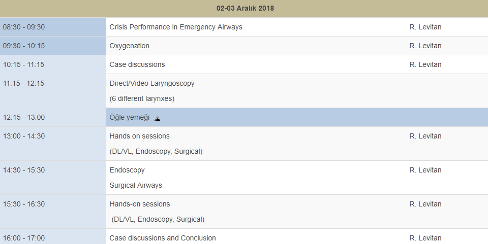 Türkiye Acil Tıp Derneği (TATD) olarak dünyadaki en geniş kapsamlı kadavra havayolu yönetimi kursunun kurucusu, havayolu yönetimindeki icatları ile yenilikleri hayata geçiren ve Acil Tıpta önde gelen hakemli dergilerde çok sayıda makalesi bulunan havayolu yönetimi alanındaki en ünlü Acil Tıp uzmanı Richard Levitan ile Pratik Acil Havayolu Yönetimi kursunu 02-03 Aralık 2018 tarihlerinde İstanbul’da sizlerle buluşturuyoruz.